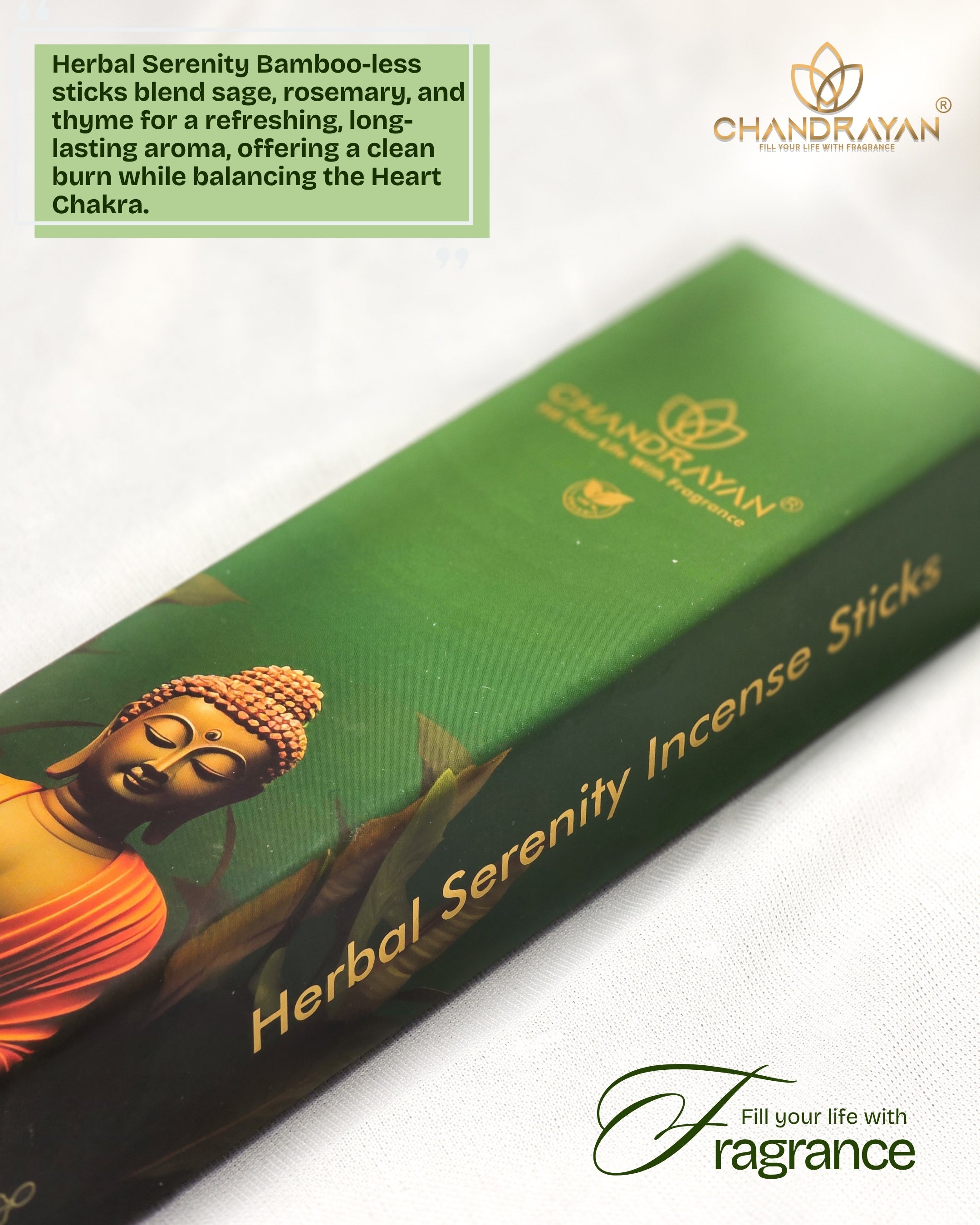 Infused with the soothing essence of sage, rosemary, and thyme, Chandrayan Herbal Serenity Incense Sticks bring balance, clarity, and restoration with every burn. Crafted on eco-friendly bamboo sticks measuring 10 inches in length and 3.5 mm in thickness, they release a gentle, grounding aroma that enhances meditation, promotes relaxation, and sharpens mental clarity.