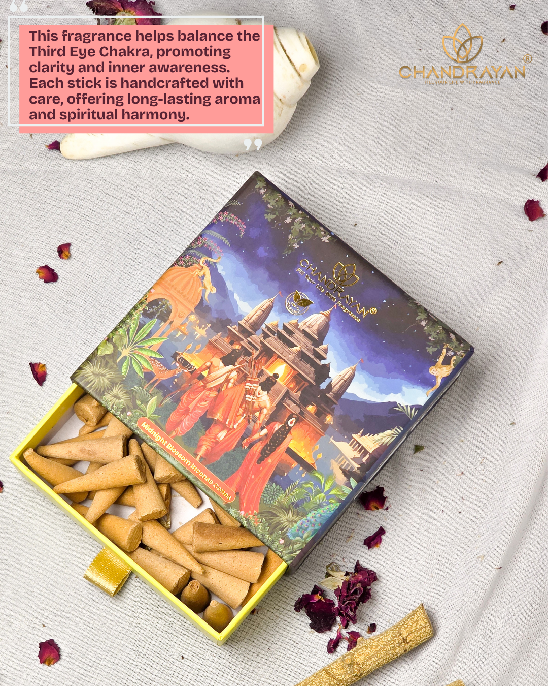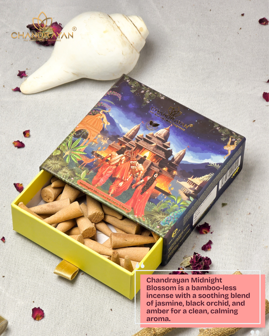 With 50 cones in each box, transform your space into a sanctuary for prayer, meditation, or relaxation. Handcrafted with care by women artisans from the Save Child Life NGO, each cone not only fills your surroundings with soothing fragrance but also supports a meaningful cause. With every breath, Midnight Blossom surrounds you in an aura of peace, creating a retreat where tranquility and introspection beautifully meet.