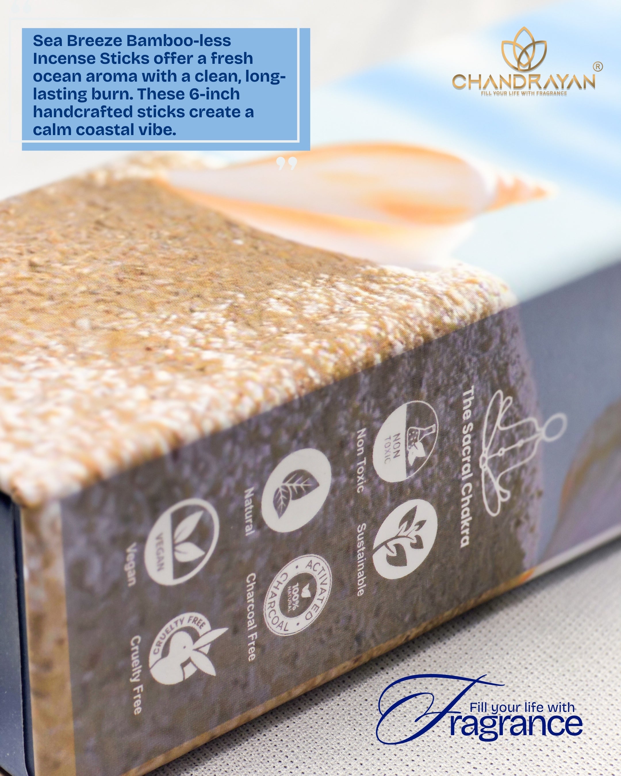 Handcrafted by women artisans from the Save Child Life NGO, Sea Breeze transforms your surroundings into a tranquil coastal retreat—perfect for relaxation, meditation, or simply uplifting your home’s ambiance. Light a stick and let the soothing waves of fragrance wash over you, creating a peaceful sanctuary that echoes the calm of the coast.